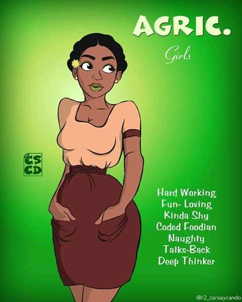 Agriculture girls are very hard working and fun loving.They like having fun.They are kind of being shy.They like food a lot and very naughty.They are talk backs and makes them argumentative.They think very deep.
