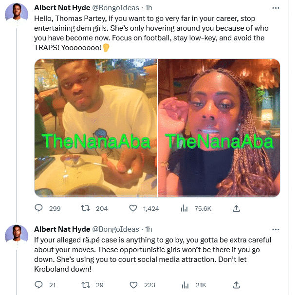 “As for Partey, it seems he has no interest in playing for Ghana” while adding, “Personally I think Partey is m not playing with his heart… like them, force am to play.”