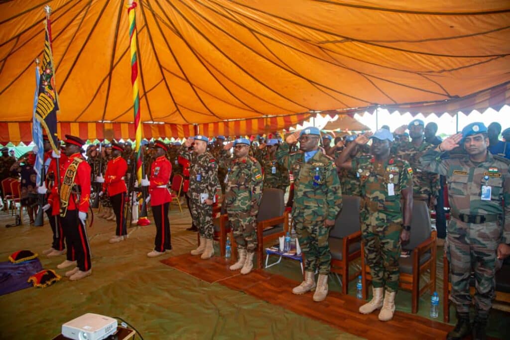 The ceremony was held on Saturday 24 June 2023, under the theme “Duty Consciousness” to officially induct the CO of UNISFA GHANBATT 2 Lieutenant Colonel Edward Sarpong Appiah into office and to mark the successful insertion of the full compliment into Sector South of UNISFA Area of Operational Responsibility (AoR).