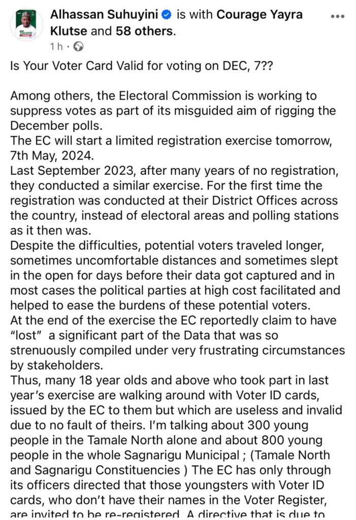 We acknowledge that these are difficult times in our democratic dispensation but we should be reminded that we are also dealing with an EC that is hell bent on doing the bidding of the failed NPP government. As a result, they ignored wise counsel that the registration period was too short to compile a credible register. With this in mind, we urge all our members, supporters and sympathizers to ensure that their names are on the register for the rescue mission. They should therefore come out in their numbers to check their names in the provisional register at all the exhibition centers.
