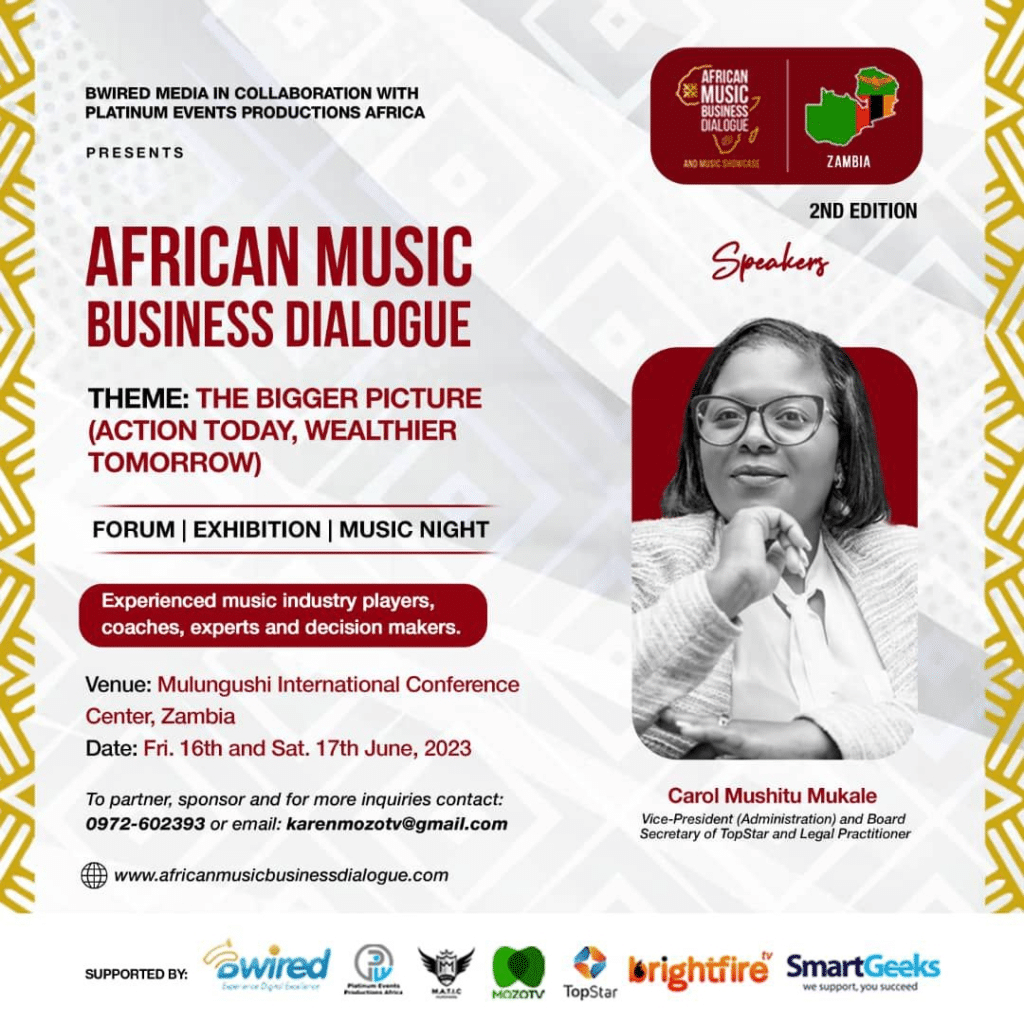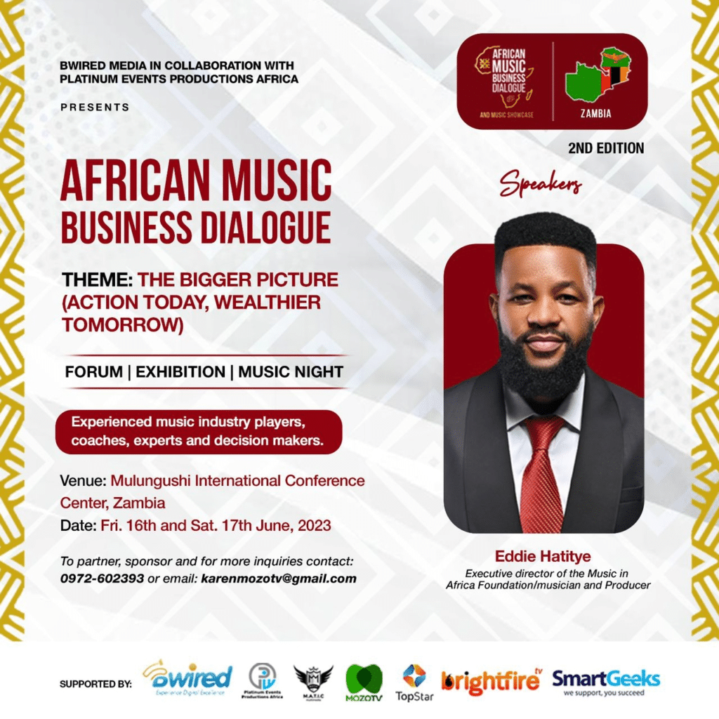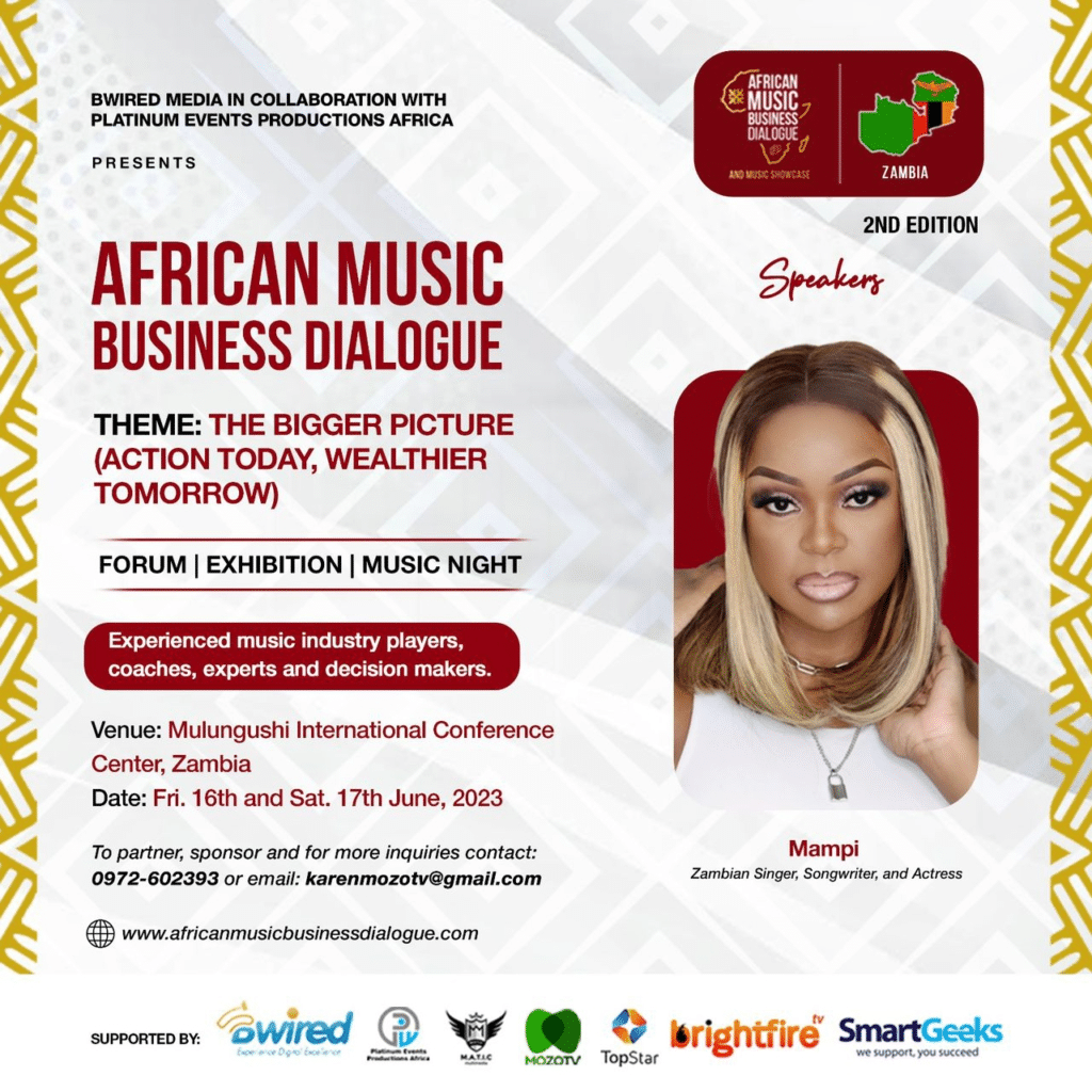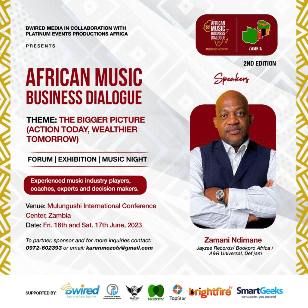 On June 16 and 17, 2023, Bwired Media will host the African Music Business Dialogue in association with Platinum Events ProductionEventsAfrican at the Mulungushi Conference Centre in Lusaka, Zambia.