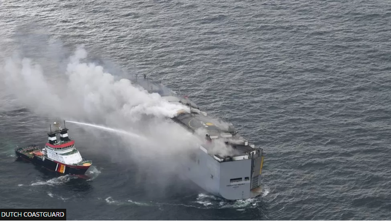 In the North Sea, distressing images shared by the coastguard depicted the Panamanian-flagged Fremantle Highway shrouded in smoke, its deck ablaze.