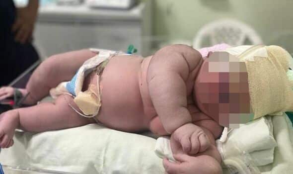 Medics believe that the supersize baby is the biggest to have ever been born in the state, beating the previous record of 13lb and 1.8ft.