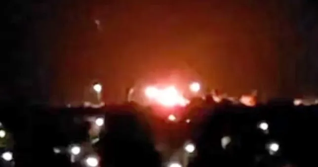 A video on Telegram showed big flames shooting up into the dark sky above the building.