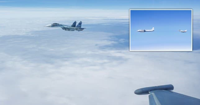It was being escorted by Su-27 Flanker-B fighter jets, the RAF said in a statement.